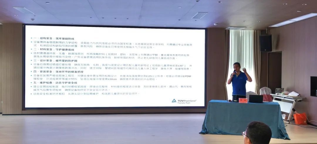 TÜV莱茵大中华区轻工产品服务部门经理薛畅讲授“绿美+儿童玩耍”的安全标准与运营原则