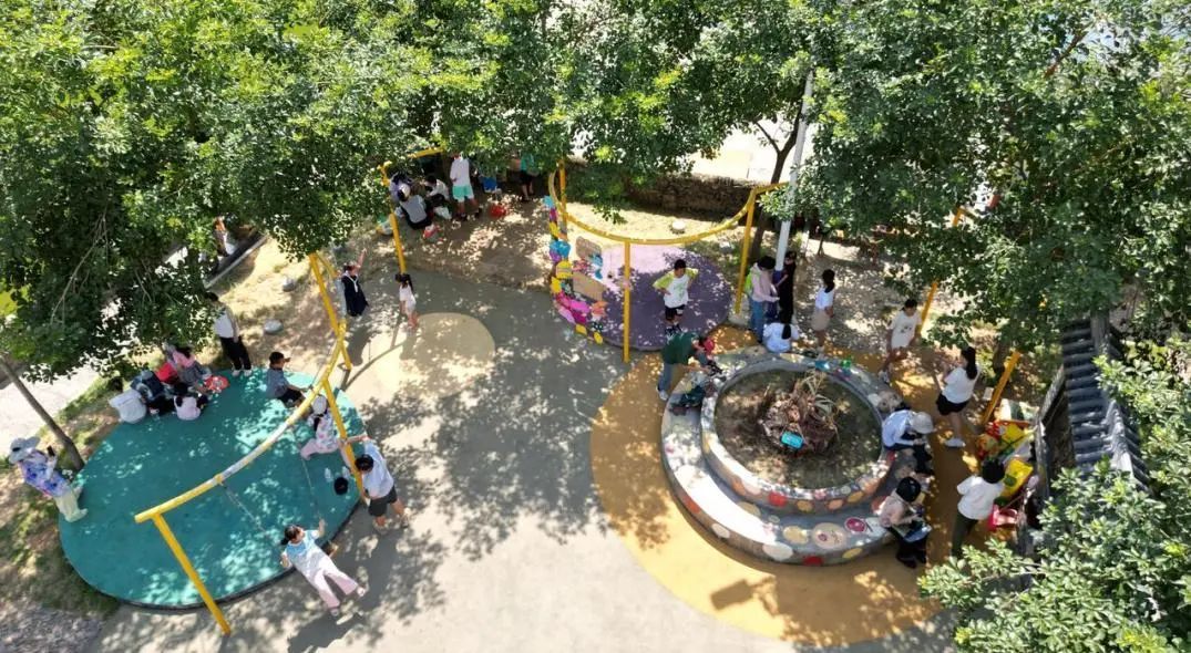 在乡村儿童公园共创过程中,我们发现户外小公园为孩子们提供了远离电子屏幕、走出家门亲近自然的好机会。树荫与花园不仅营造了舒适的游乐环境,也拓展了儿童在公园里的玩耍和互动场景。公园虽小,却让村里的孩子在家门口就有了活动空间。